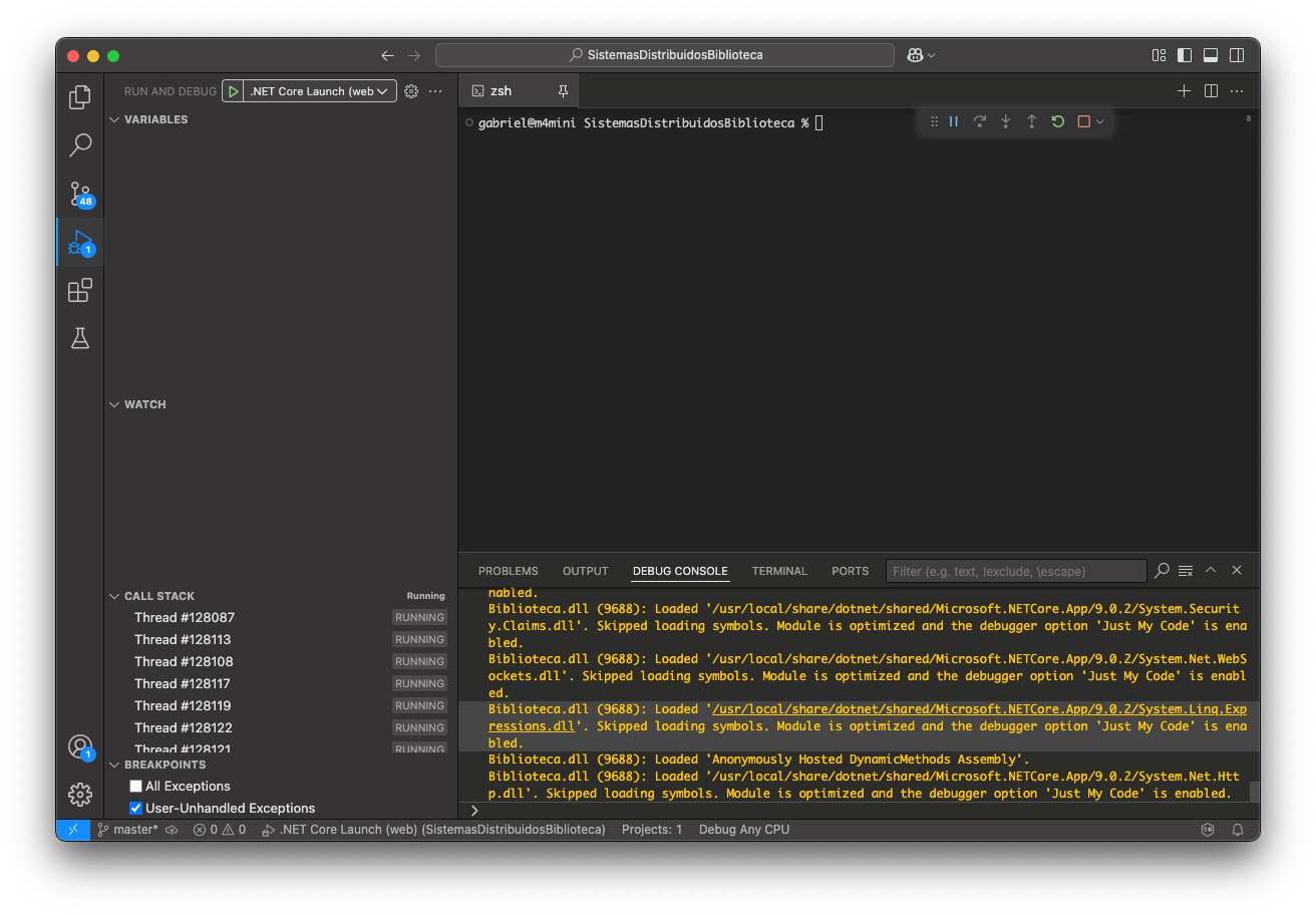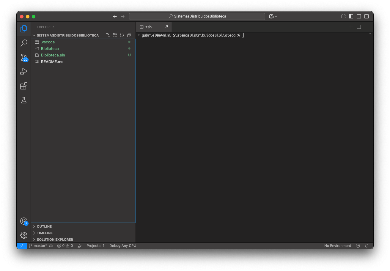 dotnet sln add Biblioteca.WebApi Para finalizar, vamos configurar o depurador. Abra a aba do depurador na barra lateral. Você deverá ver algo como: